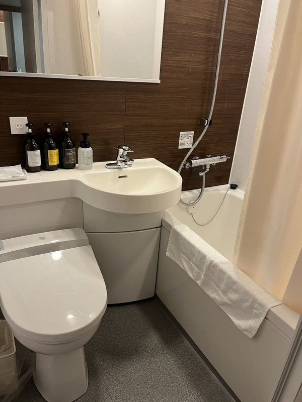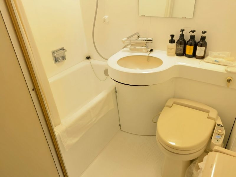 お風呂はユニットバスで、シャワーカーテンをしめて湯船に浸かると圧迫感があります。あと、仕方ないがシャワーカーテンがかなりくさかった。お部屋自体は