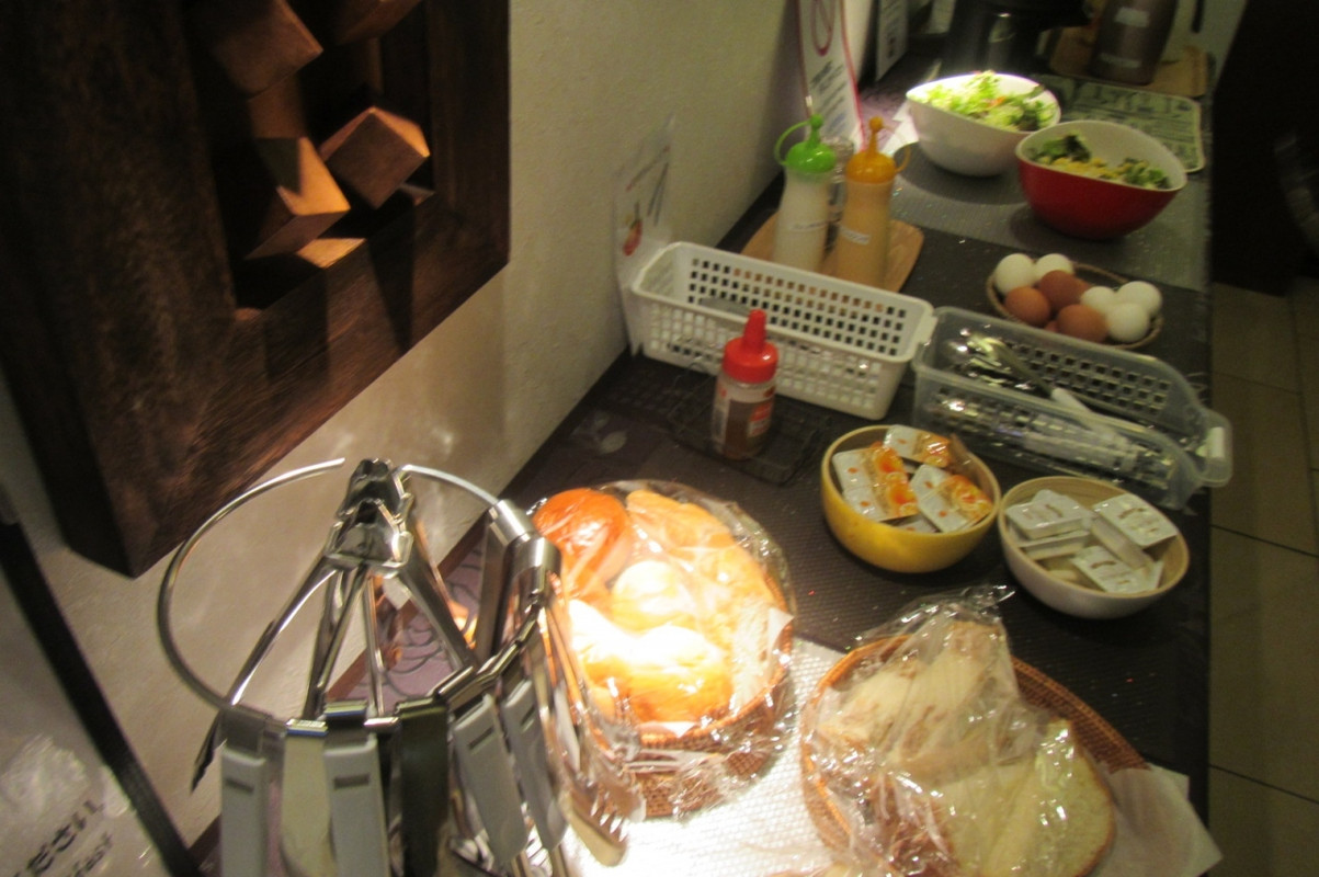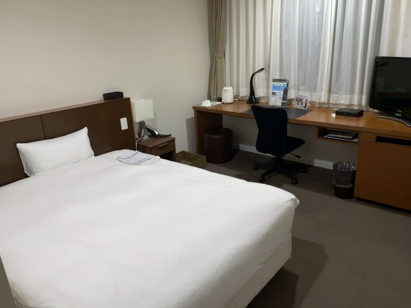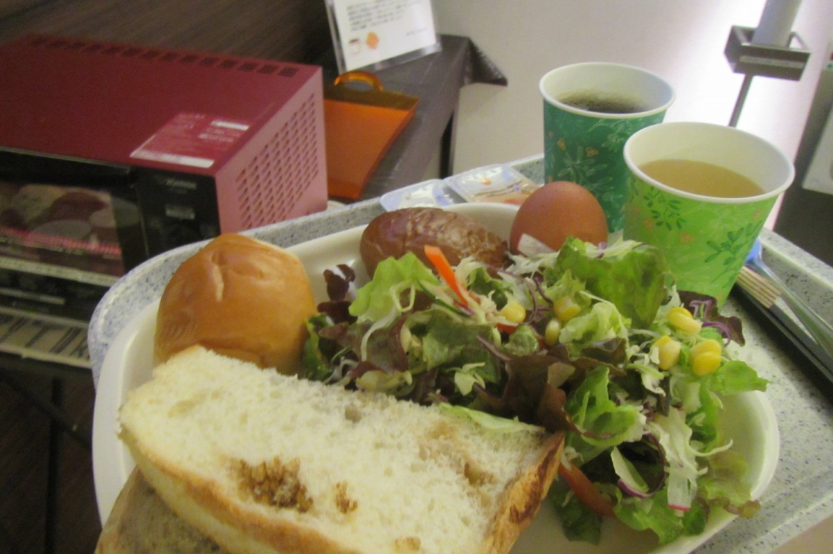 本厚木駅から徒歩3分(230m)というアクセスの良さはよいとしても、ちょっと型落ち感のある古めなビジネスホテルです。ただ、それでも設備や内装はきちんと衛生的に整えられていて、ホテルのホームページなどには明るい彩色の調度品に清新な雰囲気の部屋の写真が載っているのですが、実際の部屋はそれほどきれいではありませんでした。宿泊プランによるなか分かりませんが、ホテル内のきれいな部屋を載っけたのではないかと思ってしまいます。しかし、駅近な割には、他のホテルに比べて料金がお安めなところが良いです。朝食は現在、新型コロナの影響かロビーで取った皿をお持ち帰りする部屋食の形式となっています。パン・サラダで構成されるシンプルな朝食でした。