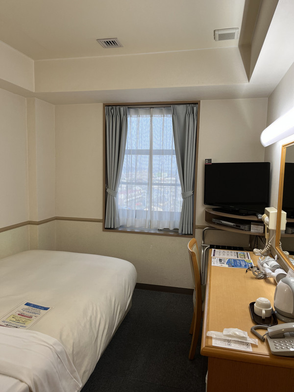 土浦駅東口から歩いてすぐ(2〜3分?)で、立地はとても良いです。ホテル近くにはローソンとファミリーマートもあり便利だと思います。歯ブラシなどのアメニティはフロント横にありました。客室に湯沸かしポットとコーヒーカップはありましたが、お茶などのティーバッグはありませんでした。ホームページによると5月末まで工事中だそうで、気になる方はホテルに直接確認した方が良いかもしれません。
