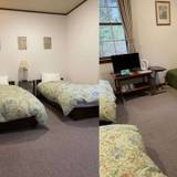 広いお部屋でトイレも2つ!これ最高だった!温泉は近くの鹿の湯の入浴券つきプランで車で5分。夕食の洋食は普通に美味しかったです。それよりおすすめのコーヒーが美味しかった!オーナー夫婦はとてもフレンドリー。コロナ対策もしっかりしてたし、いつか再訪したい。1 / 4