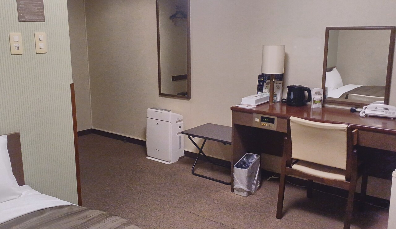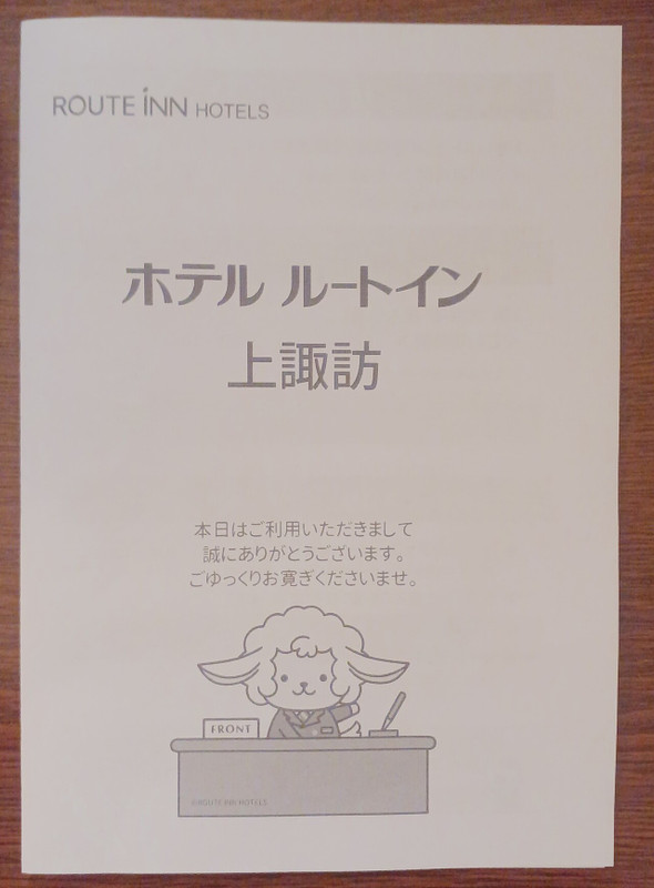 1泊利用。公式アプリでは空室ナシだったが、電話で予約が可能だった。ホテルの入口は階段を15段くらい上る。右手すぐが朝食会場。その向こう側がフロント。部屋はダブル。エレベーターは1基。枕が硬かった。窓は開く。エアコンの冷房、暖房切り替えはリモコンで可能。あいにくの天気だったが10月末は紅葉は見頃前だった。上諏訪駅から徒歩10分程度と立地はよい。