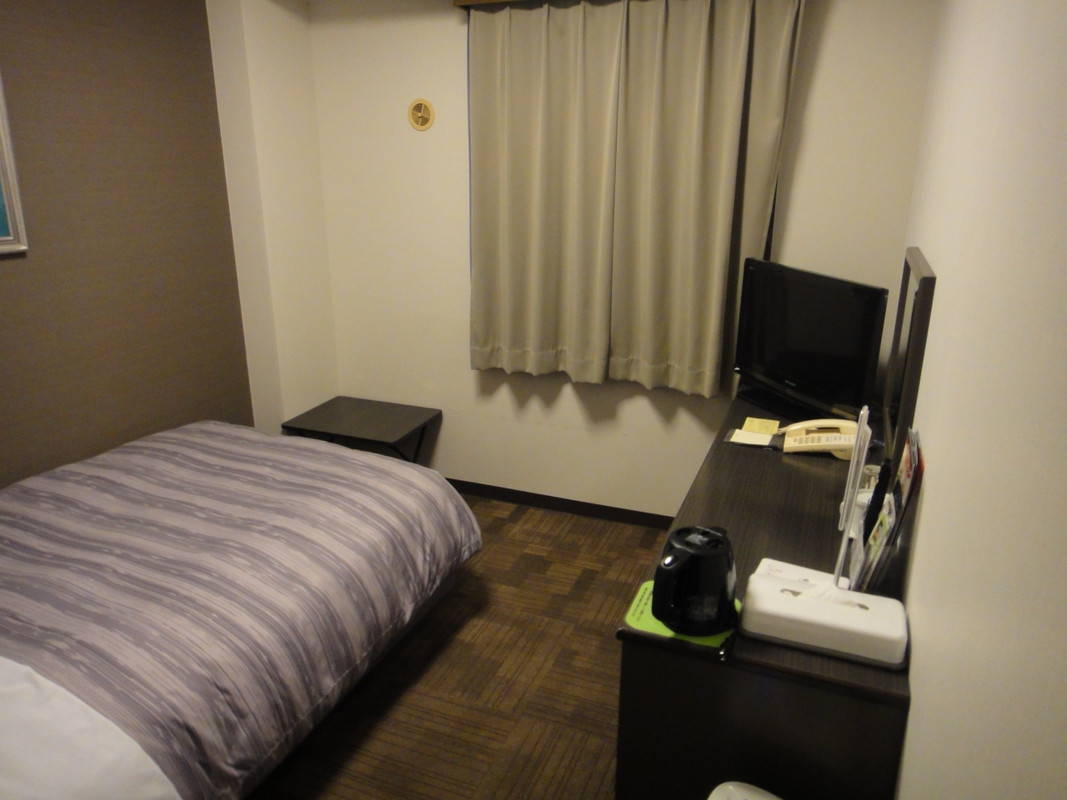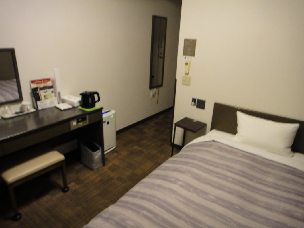 シングルに宿泊したが、部屋は由緒正しきルートインスタイル。デスクの椅子の背もたれがなかったのが、ちょっと不自由ではあった。1階には大浴場、コインランドリーがあり、長期滞在者も多いようだった。大浴場は3人入ればいっぱいになり、「大」かどうかは微妙だったが、清潔で気持ちよく入れた。