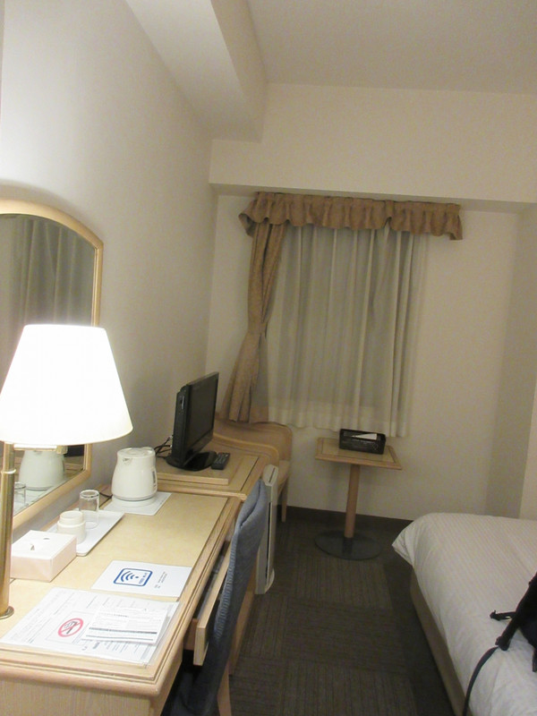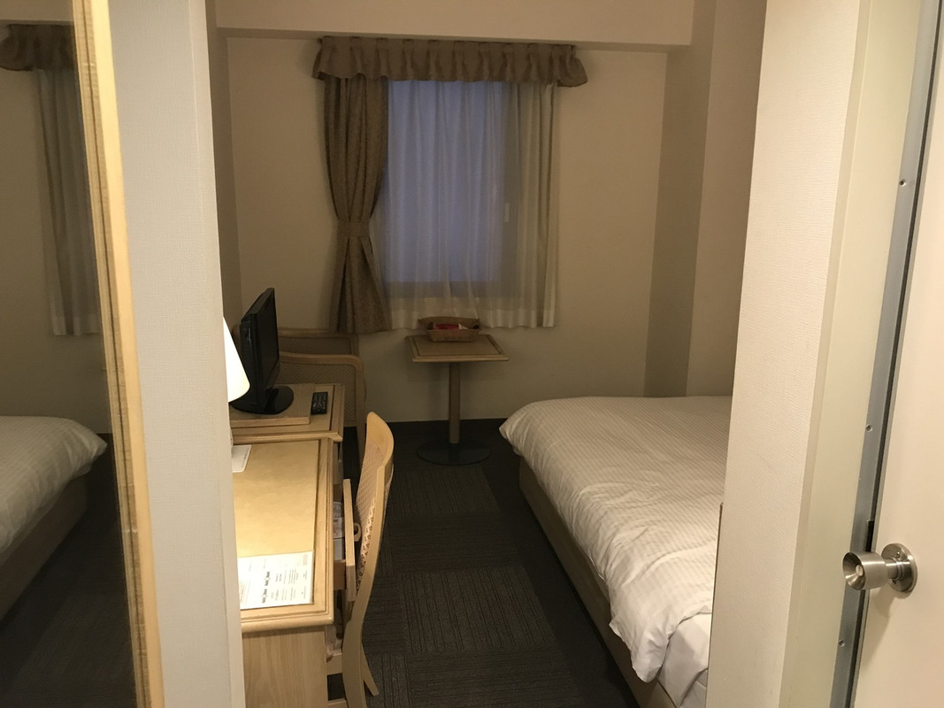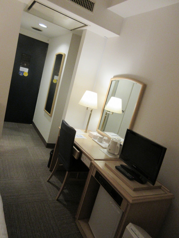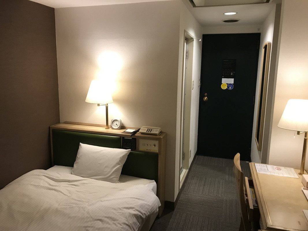 室内のあかりは薄暗く、浴室の湯は水と湯のハンドルを回しながら調整、カードキーではなく普通の鍵、通路の音はよくきこえる。設備は古く一昔前のホテルだが寝るだけなら申し分ない。