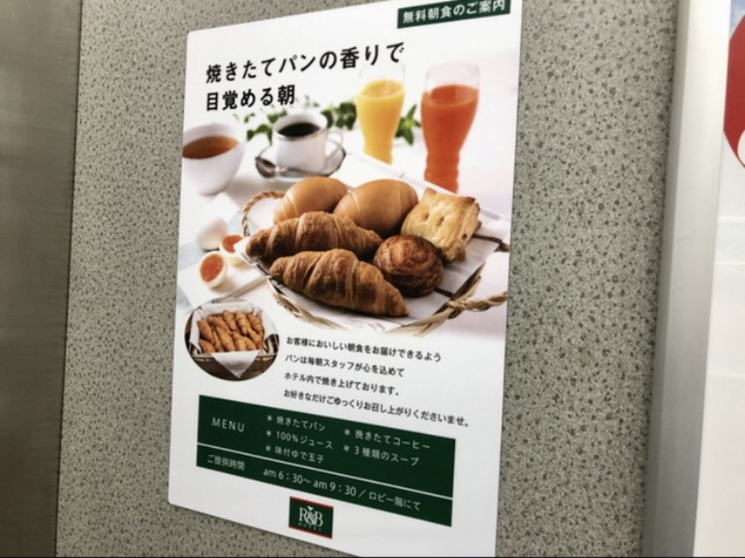 宿泊費が安いから、軽く朝ごはんを食べられるだけで嬉しいサービス。