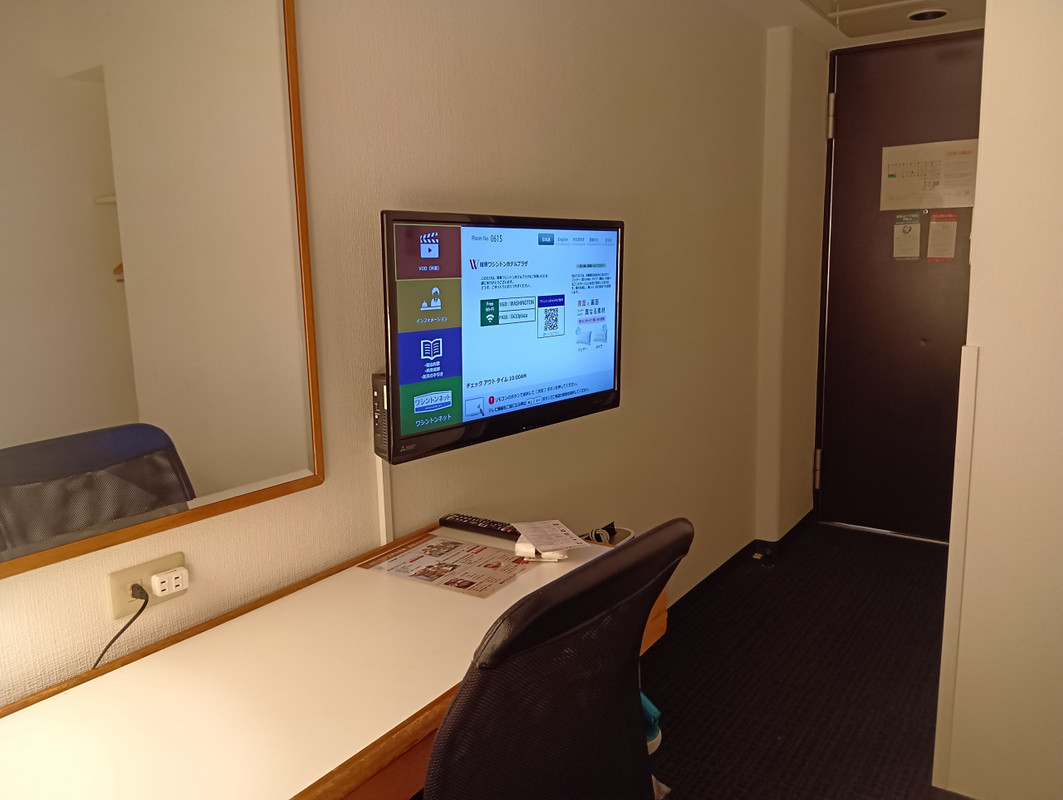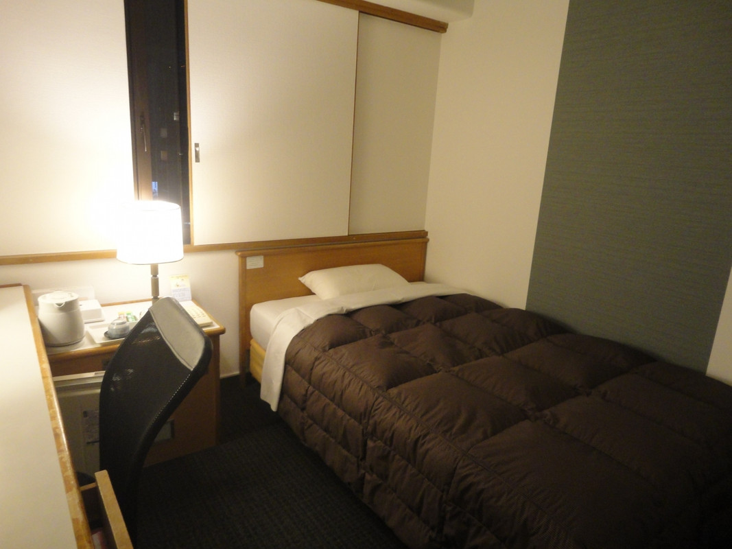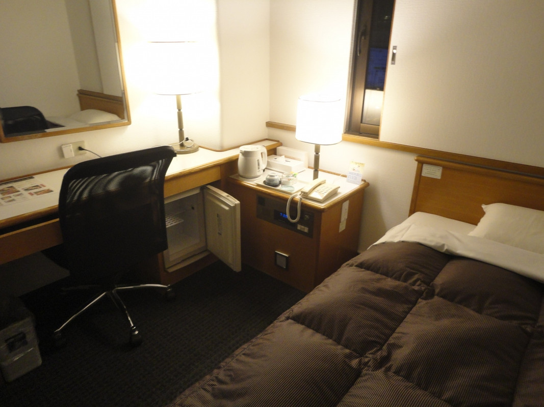 場所は名鉄岐阜駅からアーケードのある大通りをまっすぐで分かりやすいと思います。JRA岐阜駅からですと、少し遠いかもしれません。年季はありそうですが、客室内はリニューアルされていました。ベッドの枕元にコンセントがあったり、柱の間の狭いスペースにクローゼットがあったりして、工夫されているようでした。