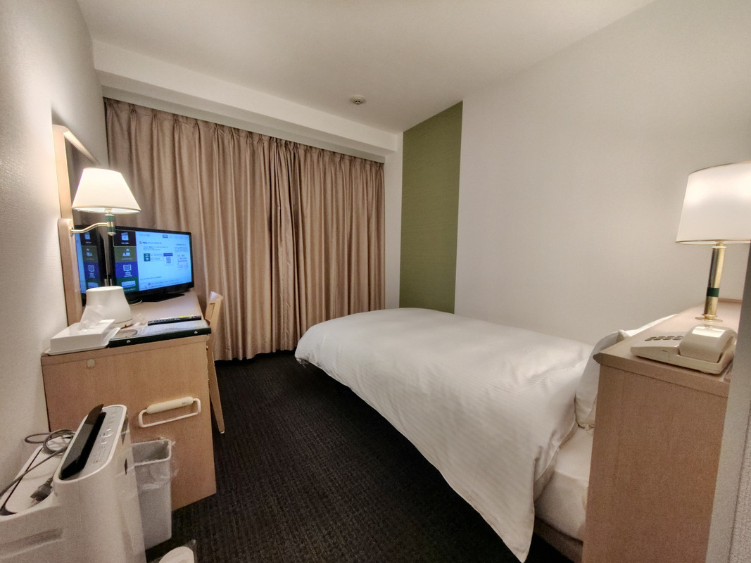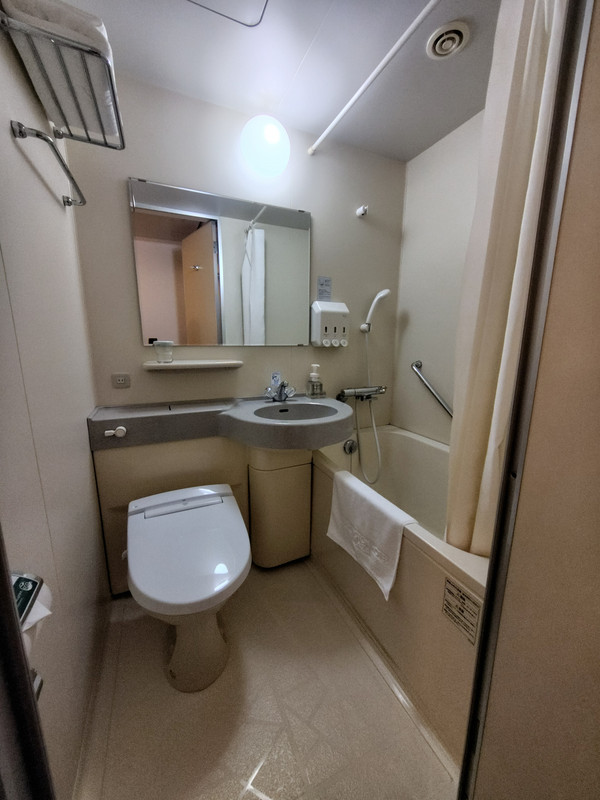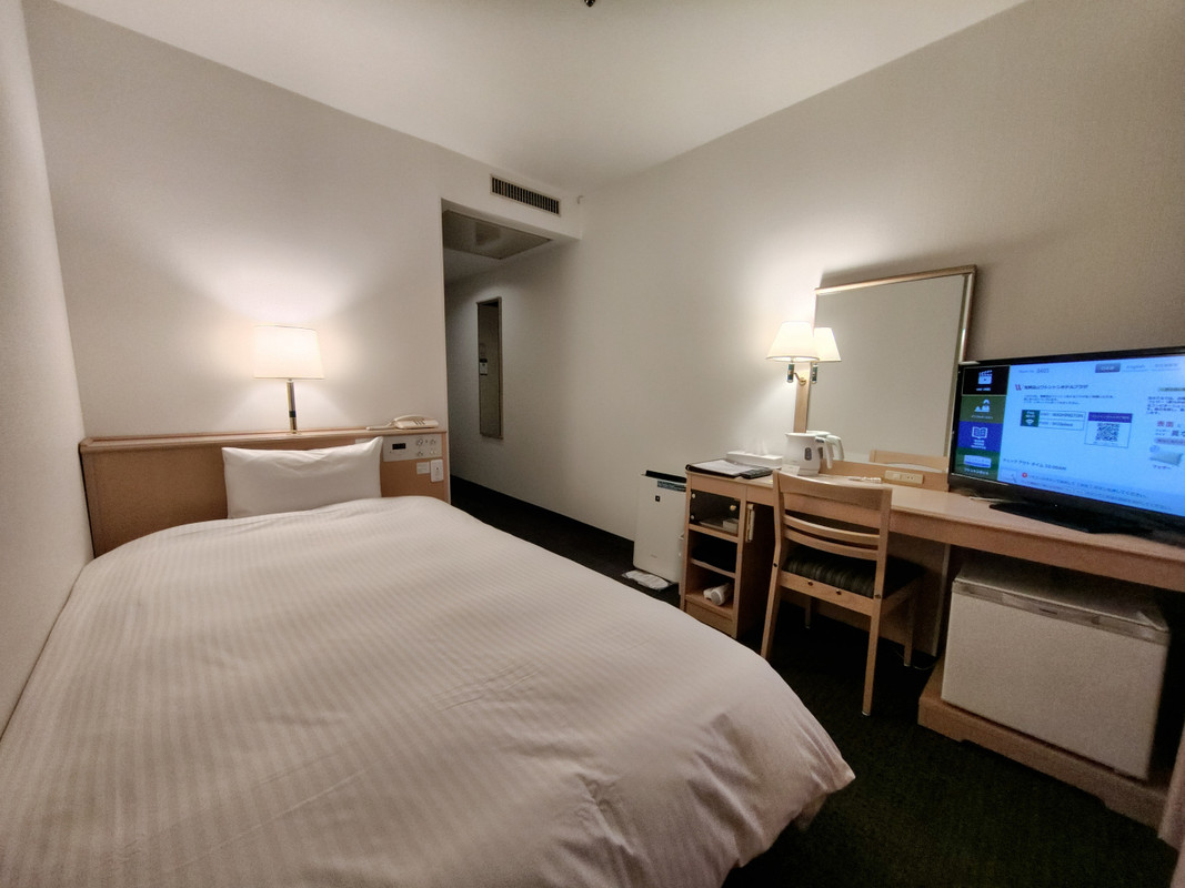 シングルに宿泊。過不足の無い仕様。アメニティはフロントから持っていくスタイルだった。2階にフロントと、大浴場がある。大浴場は大きな風呂と洗い場からなるシンプルなスタイル。マッサージ機などもある。
