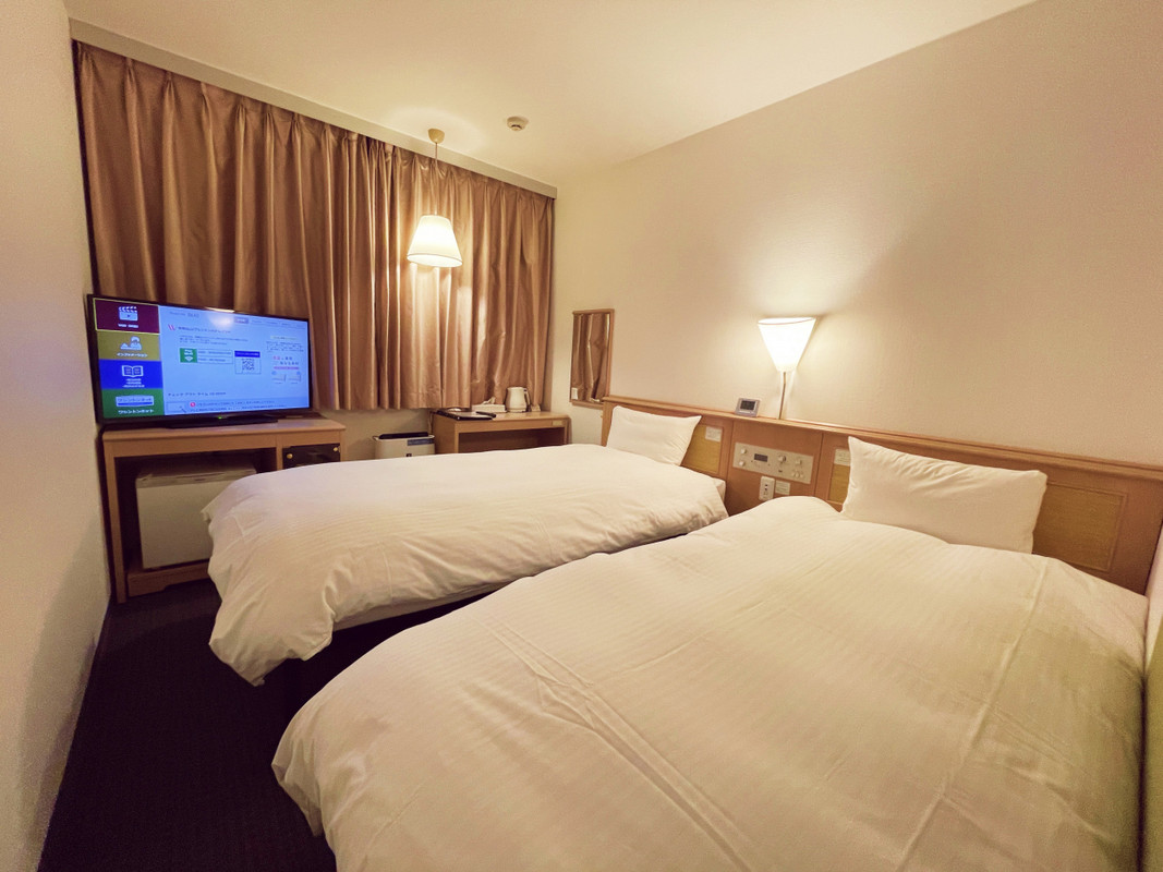 ツインの大きめの部屋にしたので圧迫感が無く良かったのですが、カードキーが一部屋一枚だったので2人で利用するのは不便でした。部屋着は上下セパレートタイプのパジャマタイプでした。朝食が和食定食だったので頂きませんでしたが、近くにはコンビニが有り不便は無かったです。