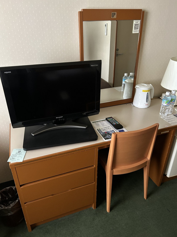 松阪駅から10分くらい歩きますでしょうか。雨の日でしたので結構しんどかった距離感でした。ホテルは大型で館内は暗め。テンションは上がりません。経年劣化はしかたありませんが、やはりメンテナンスをしていないのか、こちらもテンションが上がらないどことか下がる感じ。今回は寝るだけでしたし、早朝にチェックアウトしたのでなんとか我慢できるレベルでした。