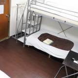 部屋は非常にシンプルでクローゼットもないですが、折り畳みテーブル、ミニ冷蔵庫とテレビはついています。(あまりきれいではないです)