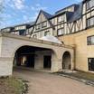 施設の正面 (日没後)