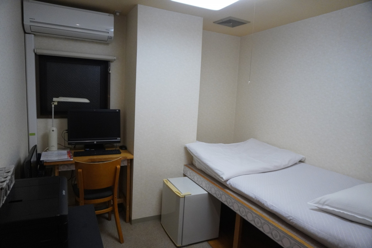 トイレも風呂も共用。ベッドは簡易ベッドみたいな感じですが、ロビー周りのゆったりさとかもあって、基本的な快適さはあると思います。部屋にはパソコンやプリンターまでありましたが、海外の人を意識したものでしょうか。ちょっと余計な感じもなくはないです。1 / 1