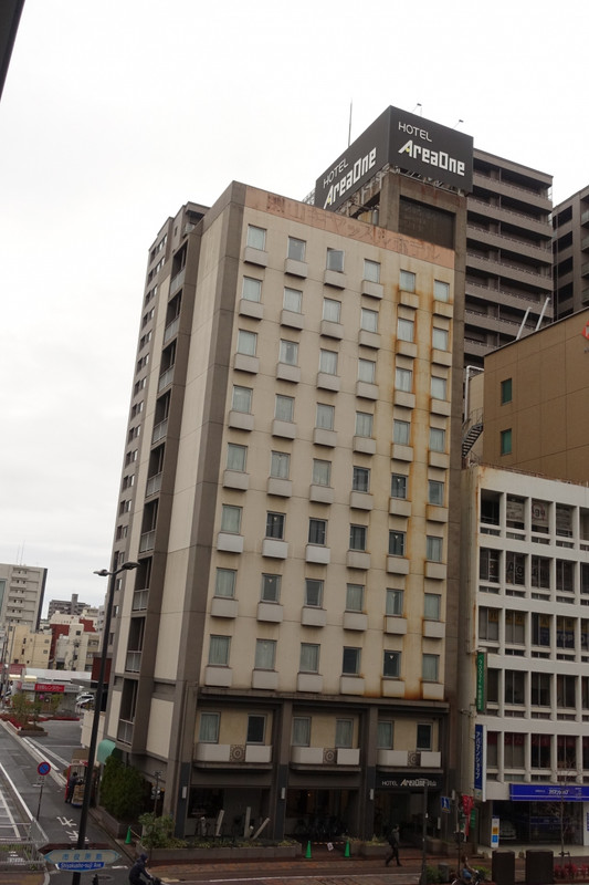 岡山駅から歩いて5分と近いですし、イオンモールの道路を挟んで反対側にあるので買い物に便利です。コンビニもちょっと歩けば何店舗かあります。古いビジネスホテルを改装しているので、設備的にはところどころ古ぼけた部分もありますが、特に問題なく利用できました。