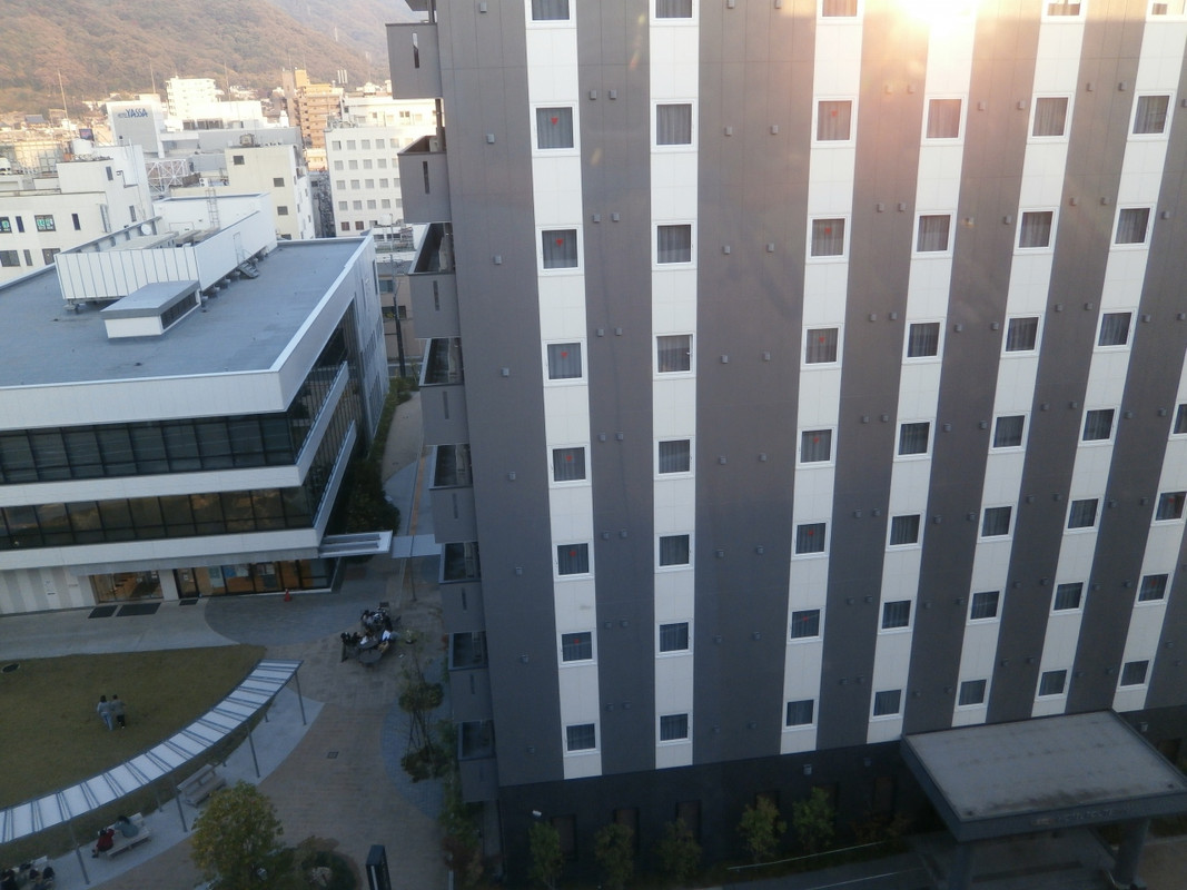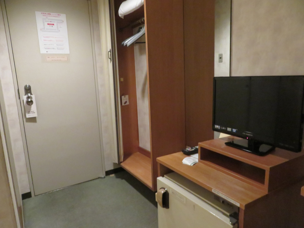 駅の正面の港に延びる大通り沿いの右手に青い庇がある所が入口でした。入口を入ると右斜め前にフロントがあり、ホテルロビーは一階でしたが客室は7階で、6階は会議室や宴会場設備があるようです。移動には6階と7階のみの専用エレベーターの移動でした。