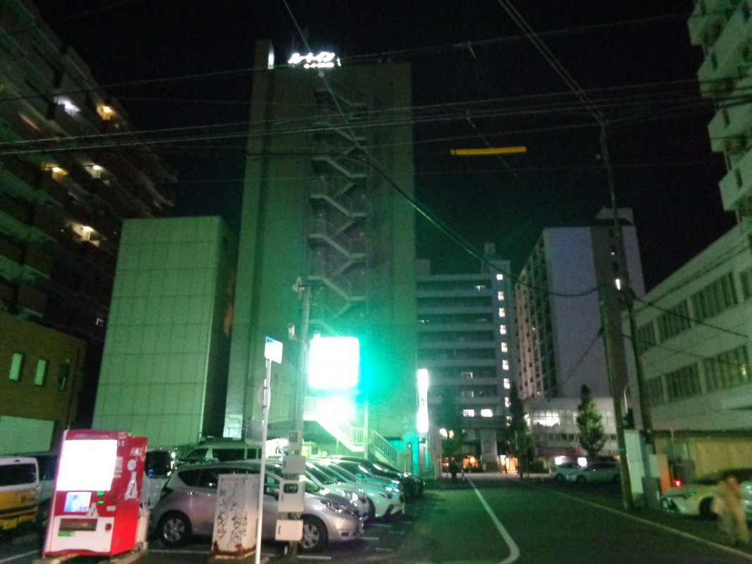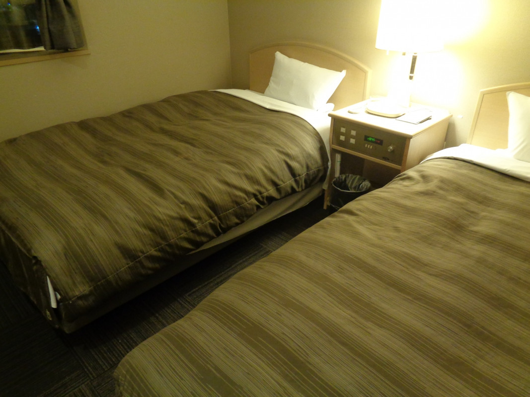 博多駅から徒歩10分くらいの場所にあります.大通りに面しているので,レンタカーだとチョット一時的に駐めるのが大変でした.部屋はツインですが,面積は13平米しかないので,かなり狭く感じます.ベッドを二つ置いたら,窓際までほぼスペースが無いような感じでした.テレビはテーブルの上にミツビシREALが置いてありました.消臭剤もありました.ルートインは大浴場があるので,そちらを利用しましたが,客室のバスタブは小さかったです.朝食はバイキングスタイルで,特に目立ったものはありませんが,量や種類は十分だと思います.ツインで一人あたり6000円程度だったので,料金的には満足しています.その他,無料の珈琲があったのは良かったです.