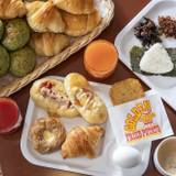 朝食は軽食と言っている通りの内容で、無料サービスAM6:30~AM9:00 1階朝食コーナーにて焼きたてパン・おにぎり・ハッシュポテト・ヨーグルト・ドリンク類がありました。