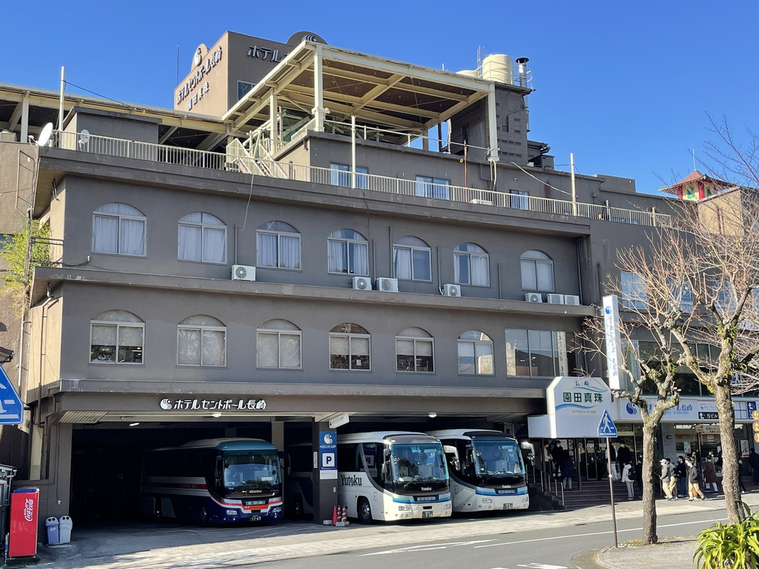 平和公園にも近い、原爆資料館の向かいにあるホテルです。真珠や長崎土産の売店や団体用のレストランも併設されています。お部屋はゆったり、床はフローリングでした。繁華街からは離れていますが、1階にはコンビニもあります。