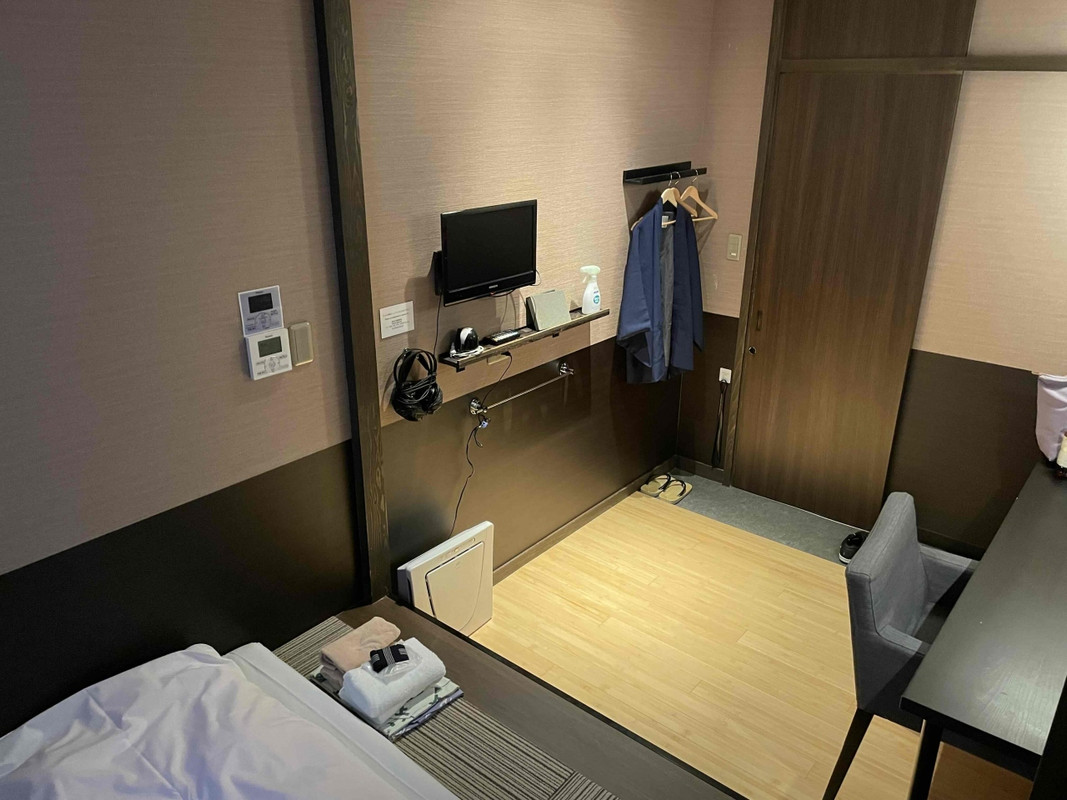 扉は引き戸で簡単な鍵しかありませんし、テレビを見るには備え付けのヘッドホンが必要です。この辺は海外のゲストルームに泊ったことがあればだいたい同じ感じだと思ってもられば。