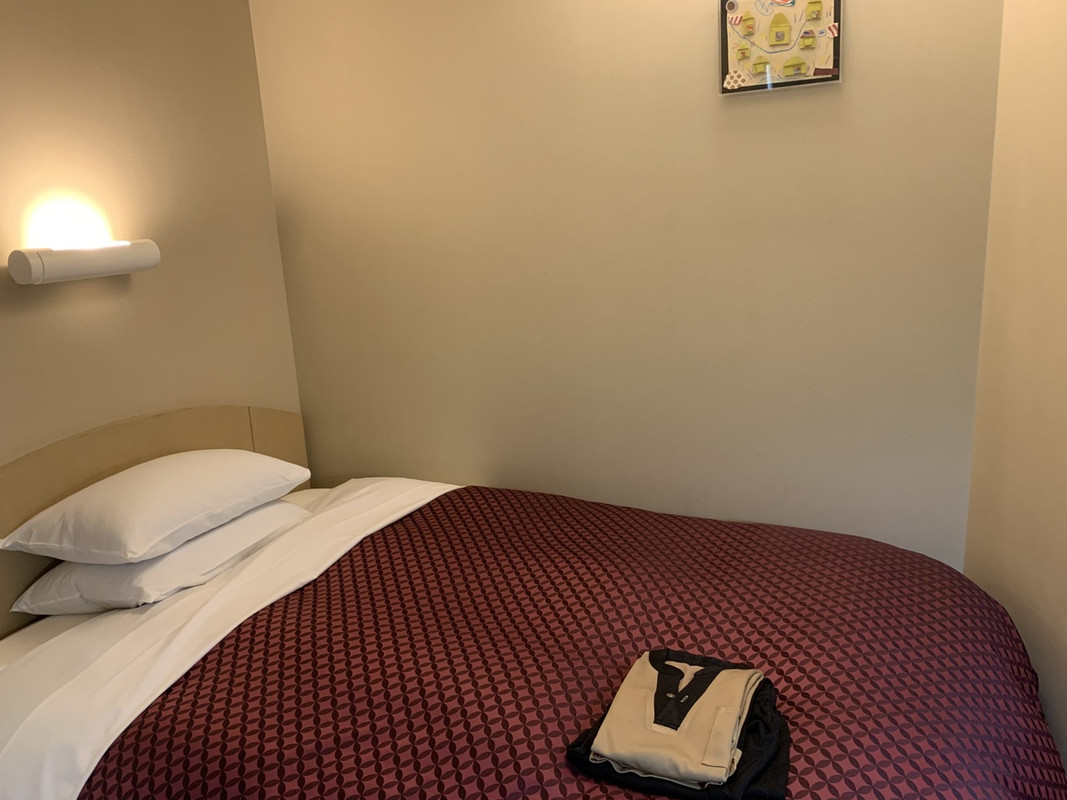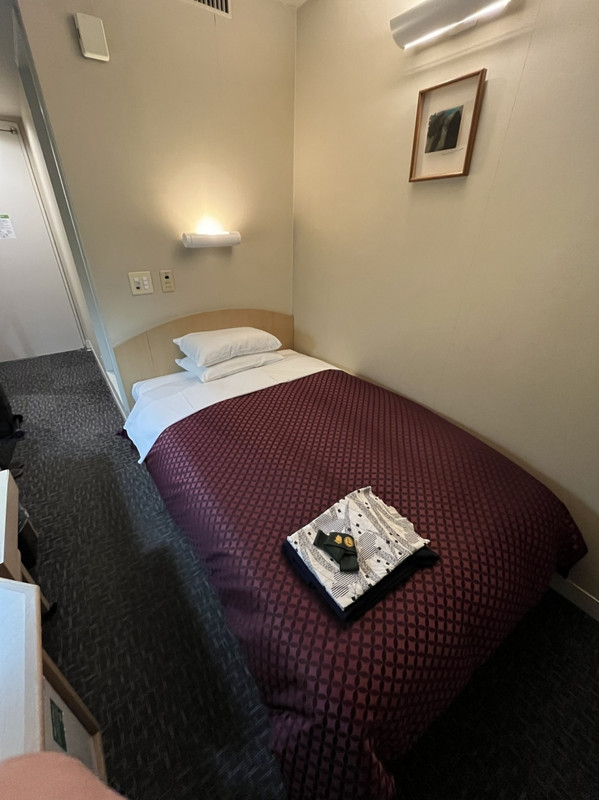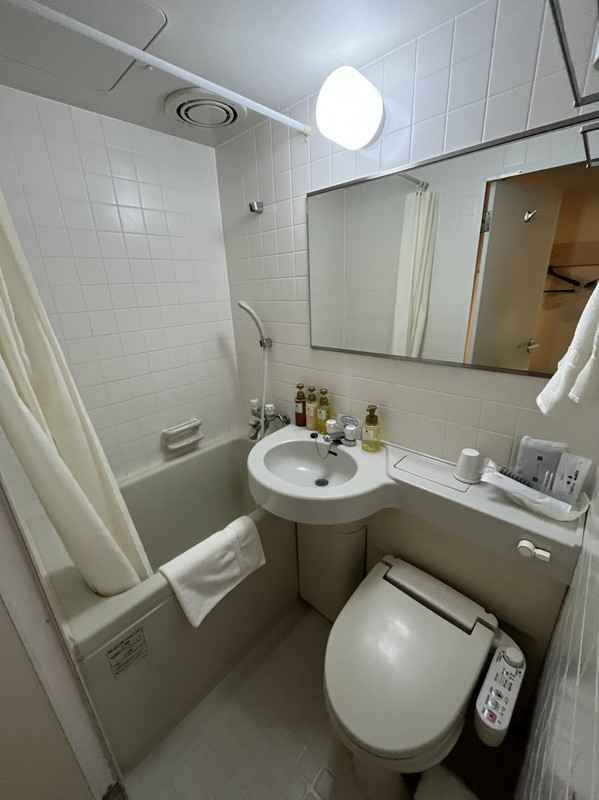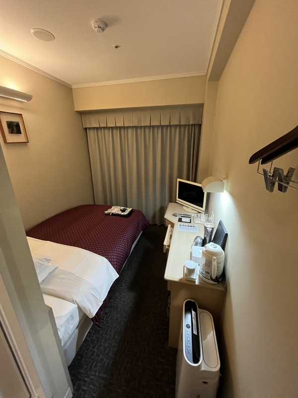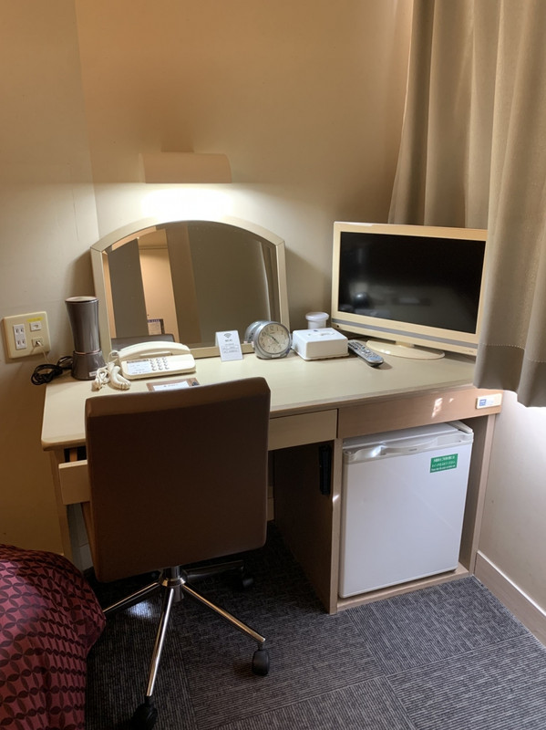 1週間前、LCCの航空券とホテルのセットで安く予約しました。駅から真っ直ぐですが、入口が地味で分かりづらくホテルの回りを一周してしまいました笑。男性用サウナ大浴場のみで、向かいにある姉妹店を使えるとのことでしたが、改装中のようで使えませんでした。がっかり。古いですが、きれいにされています。水回りは蛇口、シャワー、ウォシュレットは旧式です。シャワーは熱かったり冷たかったり不安定。テレビ横の古い目覚まし時計が今では珍しい。1階につぼ八が入っています。
