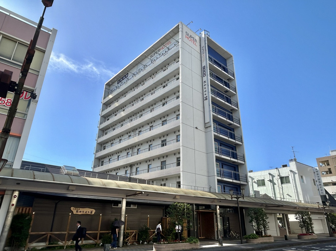 宮崎駅から徒歩で15分位、デパートの山形屋までは徒歩5分ぐらいの立地で歩けない距離ではありませんでした。全国どこのスーパーホテルにも大浴場があり温泉とうたわれていますが、あやしい温泉が多いなかこちらはぬるぬるして源泉の温度も高い本格的な温泉でした。湯船は狭く露天風呂等も無いので物足りなさはありますが、泉質は比較的良かったです。朝食はコロナの影響で弁当になってました。1泊4000円と安く泊まれて満足です。