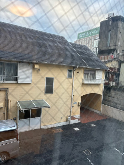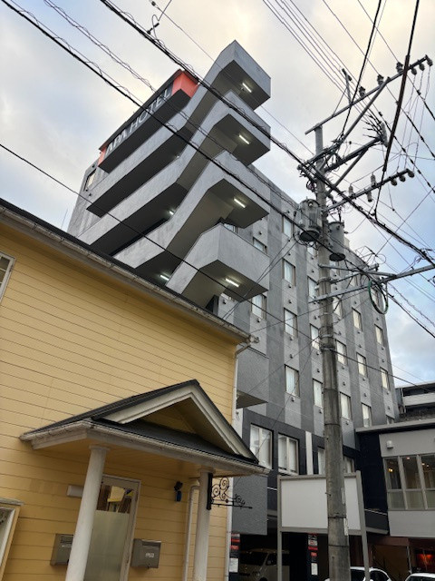 HOTELは延岡駅側と1本裏の飲み屋街側2か所に入口がありますが、飲み屋街側は工事中で養生が張られており一部駐車場も使えない状態だったので、延岡駅側に周って車を停めましたが1階が駐車場になっており(結構狭い)、フロントで申請すると宿泊者は1泊500円で駐車可能です。