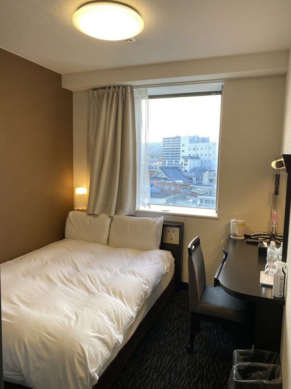 急遽延岡に延泊することになり定宿が取れなかったのでこちらに宿泊。アパホテルはフロント階のデザインがどぎついので一体誰の趣向なのだろうといつも不思議に思ってしまいます。部屋に入るとベッドに枕が4つあったのでダブルルームのようですがこの部屋で2人は狭いでしょうね。洗面所のコップが個包装された使い捨ての紙コップなのは良いですね。窓が開けられるのか分からずじまいでしたがホテルの部屋は換気をしたいです。テレビが大きいのは良かったです。