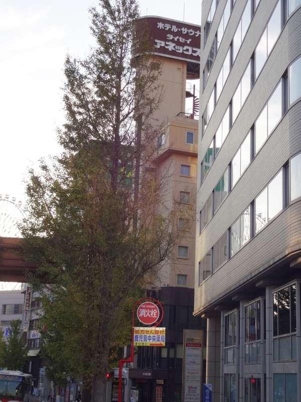 鹿児島中央駅に近い、ちょっと老朽化したホテル。部屋の広さは普通だが、風呂は狭く、壁の汚れが気になる。しかし、地下に大浴場とサウナがあるので部屋の風呂は使わなかった。大浴場には、小さいながらサウナなどもしっかりしていて、リクライニングシートに座って、(椅子のスピーカーからテレビの音が聞こえる仕組みで)複数番組を一度に見られる。また、朝食のバイキングは、種類が多く郷土料理がふんだんに使われていて良かった。