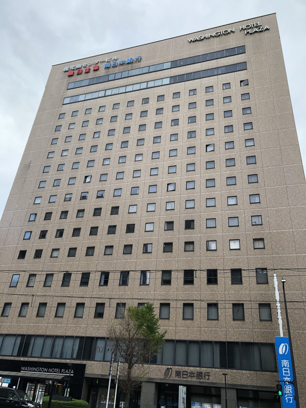 天文館の大通りに面した大型のビジネスホテルで、客室やバスの広さは平均的だが、なにぶん設備が古い。最上階のレストランからは、城山と桜島の両方を見渡すことができた。また、ホテル横の高見馬場から知覧行きのバスが出ていたので、知覧観光する旅行者には便利な立地かも。