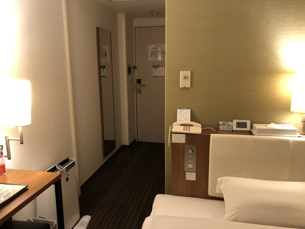 熊本市の繁華街の近くにあり、目の前にコンビニもあり、市内観光にも飲食にも困らない場所にありました。客室は少し古さは感じました。部屋のライトが、シーリングライトになっていたので、夜は好みの色・明るさに変更できました。夜も明るい蛍光灯だと疲れるし、昼間からオレンジのライトだと暗くて見にくいので、調節できたのは快適でした。