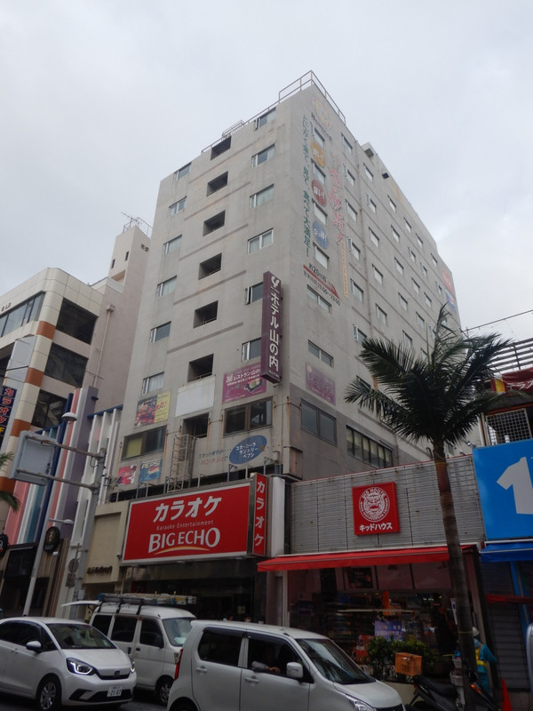 国際通り・むつみ橋交差点のドンキホーテの相向いにるホテルです。入口が狭く、カラオケ屋さんと兼用になっていてやや判りづらかった。部屋内の通路が傾斜になっていたり、全体的に造りは年季の入った感じでした。国際通りの真ん中で市場にも近いなど利便性はかなり高いです。