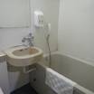 部屋はやや狭め。バスルームのカラン、シャワーは洗面台と共通。バスタブも狭め。