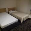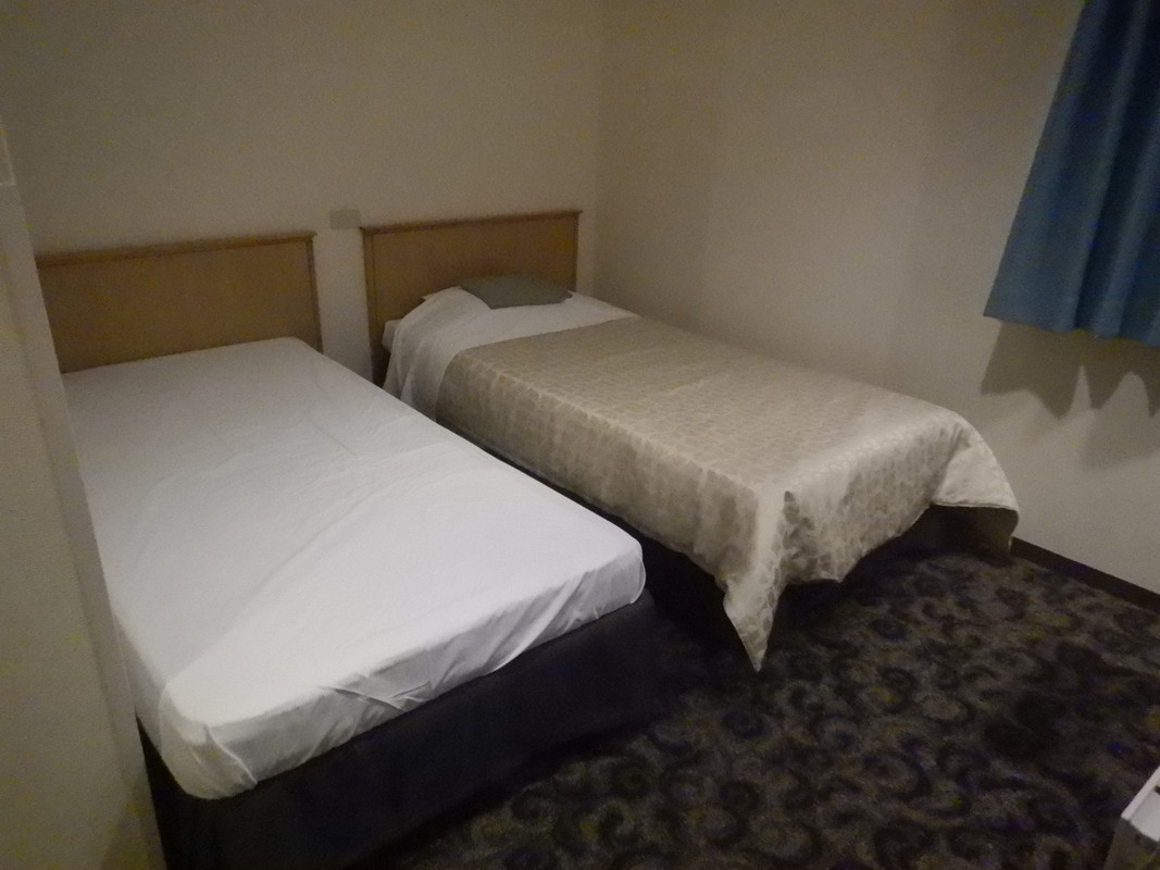 部屋はやや古め。シングルで予約したためか、ベッドは狭い。枕元にコンセントがない。椅子は板張り。冷蔵庫は小さめ。
