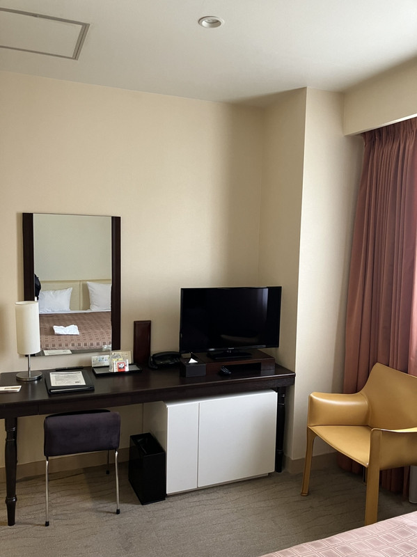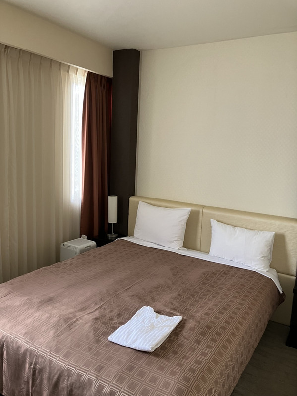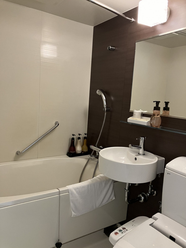 多少の築年はあるが、部屋はゆったりとした印象でユニットバスも宿泊価格帯からみても同様にゆったりとしていると感じた。また、清潔感の感じられる室内で快適に過ごすことができた。コンセントは手の届くところに4か所で充電には十分な配置だった。