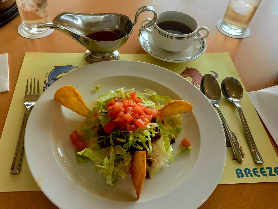 ランチは2泊目に、沖縄そばとタコライスをいただきました。とても丁寧に作られたもので美味しく、テーブルもゆったりしていて、ゆっくりいただきました。