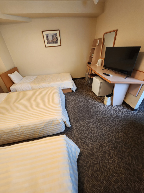 JR熱海駅から下って徒歩3分、伊東園の温泉ホテルです。見た目はビジネスホテルのようですが、本館、別館両方に温泉大浴場があります。客層はお爺ちゃんお婆ちゃん多めです。1人で宿泊の場合の最安値の部屋はフォースです。ベッドが部屋いっぱいに4つあります。1人には十分な広さです。ユニットバスですが、大浴場を利用するから問題なし。目の前はコンビニだし、雨に濡れずに熱海駅に行けるのは本当に便利です。5月16日