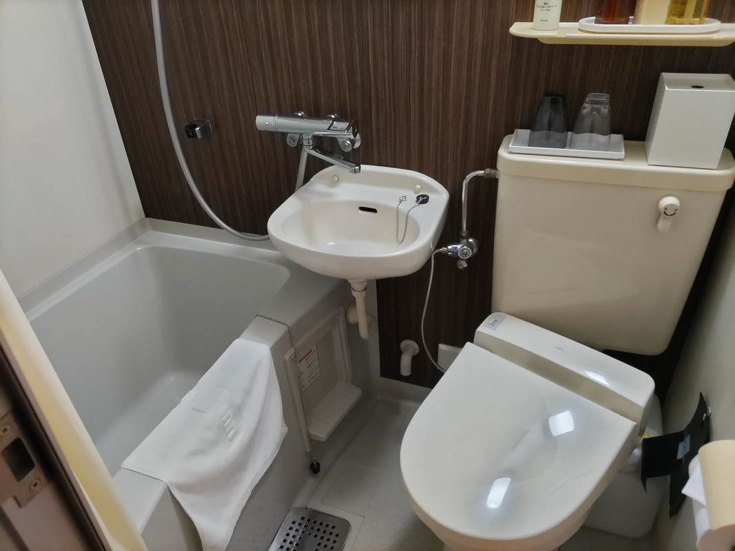 ユニットバスに「松下電工(現、パナソニック)」の表記がみられたので、ハード自体は古いと見られる、しかしながら、枕元にもコンセントがあり、動線のゆとりやベットの寝心地も文句ない。
