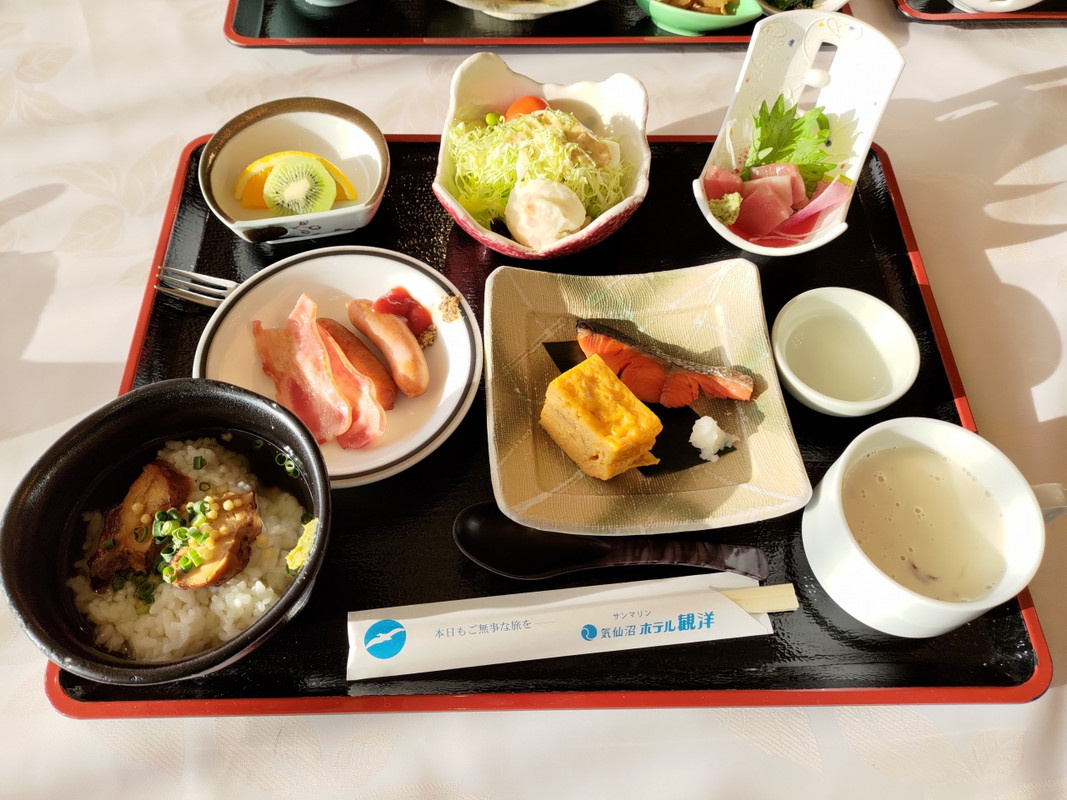 気仙沼港にある温泉付きのホテル。ここのホテルは古いが何よりも食事が良い。夕食は美味しい魚中心で大満足。朝食はやや物足りないが、それでも十分コスパの良いホテルで泊まる価値がある。温泉も空いていてとても居心地が良い