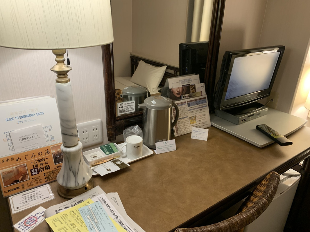 全国割第3弾。蔵王に行くための山形泊です。仕事終わりで新幹線に乗り込み、21時前に山形駅に着くと、雪が降っていました。でも道路には雪は積もっていません。山形って雪国ではなかったんですね。駅から徒歩20分ほどで到着。周りの飲食店は、日曜日ということもあり、閉まっているお店が多かったです。フロントはエスカレーターに乗って2階。クーポンとアメニティーを頂いて7階へ。年代を感じる部屋ですが、ベッドや棚に籐を使ってあったりで昔流行ったお洒落なレトロ感があります。出張族にはありがたいズボンプレッサーが置いてあります。眺望は望めませんでした。1階には柔らかい地下水汲み上げの大浴場がありますが、浴槽は定員3人という所でしょうか。1階にはローソンがあるので、アイスクリームやおにぎりを買って部屋でいただきます。朝食は最上階で景色も良く、芋煮や牛すじカレーなど山形産のメニューがありました。朝は100円で乗れるバスがあり駅まで行けます。全国割のJR付きツアーでお安く宿泊できました。