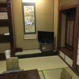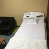 1泊3,000円。バス・トイレなし。シャワーとトイレ、洗面台共用。和室6畳に、金庫・冷蔵庫・掛け軸あり。畳の上にベッドがあって快適。大きな建物で、かつては賑わったのでしょう。年配のお姉さんが頑張っていた。