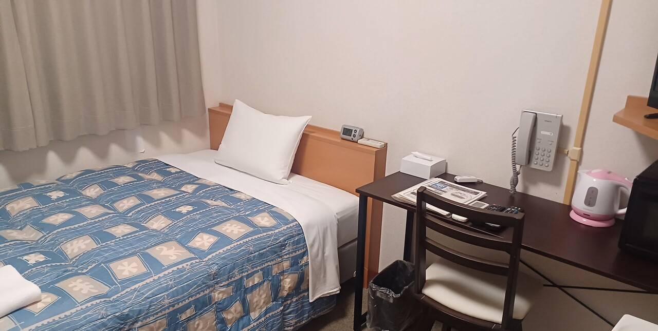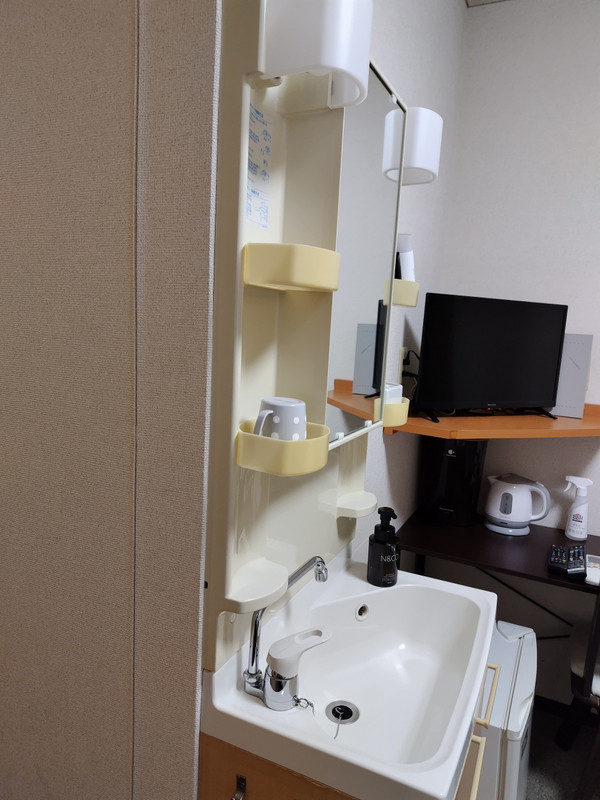 三陸鉄道が運休してしまった為、急きょ素泊まりプランを予約して1泊。フロント横にアメニティとシャンプーとコンディショナーのボトルが何種類か置いてあって部屋に持っていって利用可能。部屋のお風呂はリンスインシャンプーだった。部屋には冷蔵庫はもちろん、独立洗面台、電子レンジ、四角いピンチハンガー、ハンガーラックにスティック掃除機があり生活が出来る仕様。エレベーターは1基。2階には漫画コーナーとデスク(コンセントあり)スペース。漫画は50代前後の男性が懐かしい物が多め。朝食は600円(税込)と安かった。1階に男性専用の大浴場。近くにローソンあり。