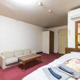 外観は正直アレな感じで古いのですが、1泊3000円という格安で利用可能。しかも部屋は広く、ソファーもあってなんだかマンションのよう。