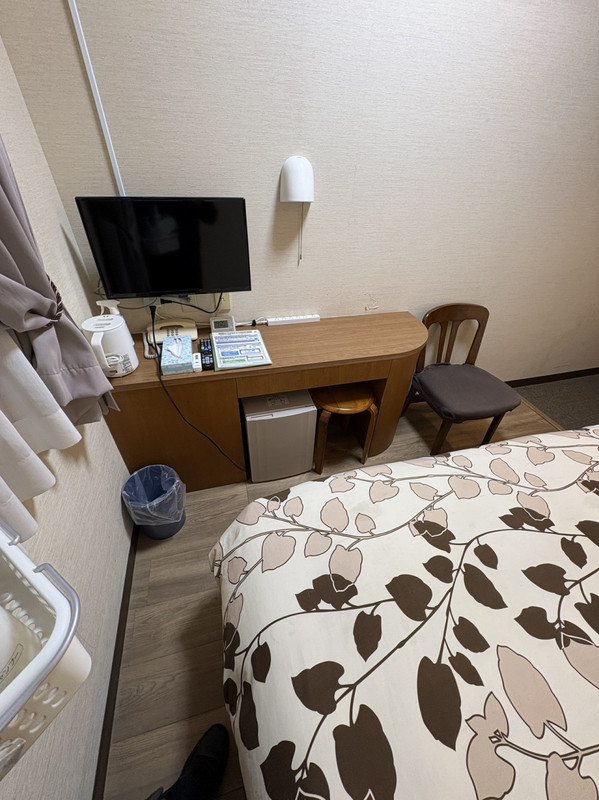 五井駅東口からやや歩く。大きな荷物を抱えながらだとなかなかつらいものがあった。フロントのお兄さんの明るい接客がよかった。アメニティ類&ゆかたは1階から持参になる。部屋は至って普通の部屋。部屋の施設は年季が入っているが丁寧に清掃されいる印象。ひととおりのものは揃っていた。
