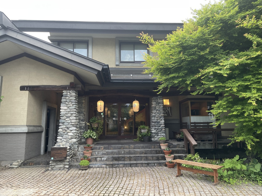 白馬八方の旅館街の中心にある和風旅館です。古風な日本建築の中でおしゃれな和モダンの雰囲気で落ち着いた館内でした。客室は10数室とこじんまりしていますが、エントランスは広々としていました。温泉が癒されます。
