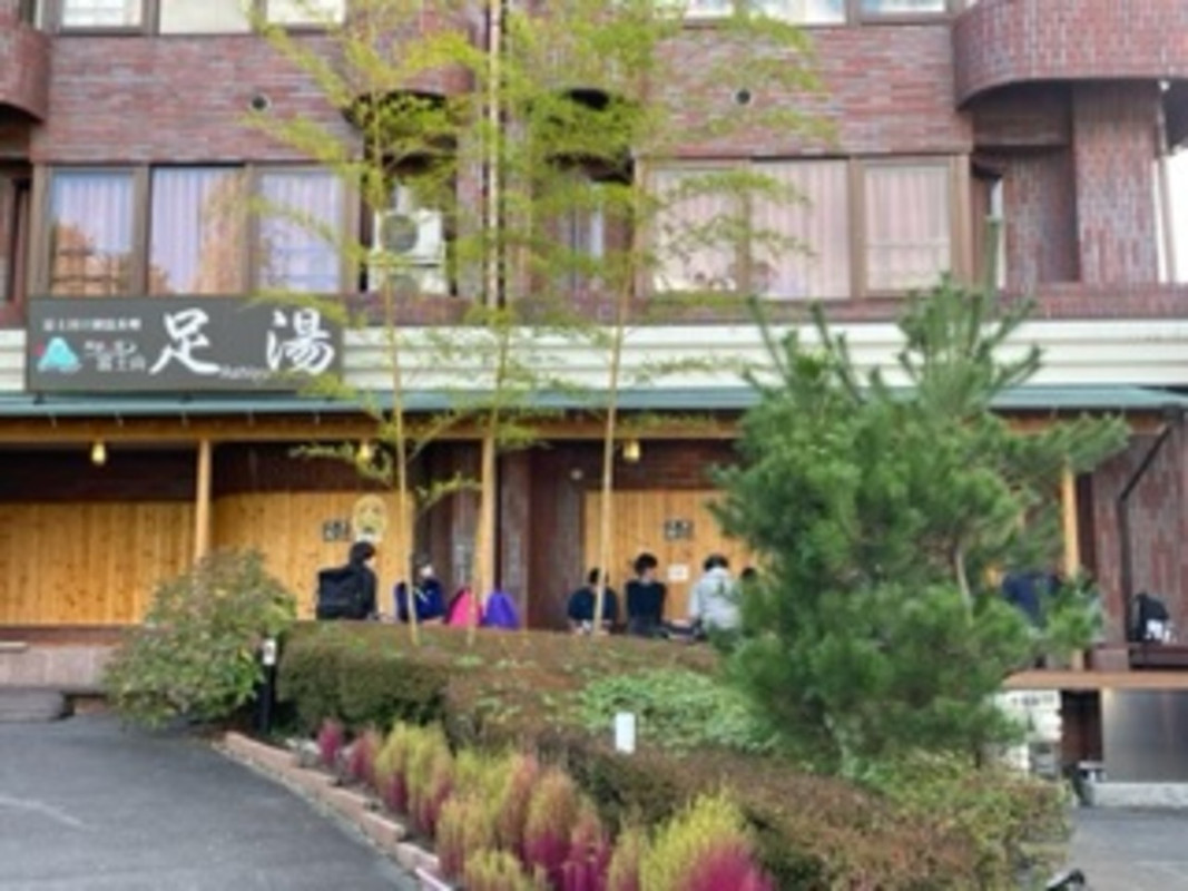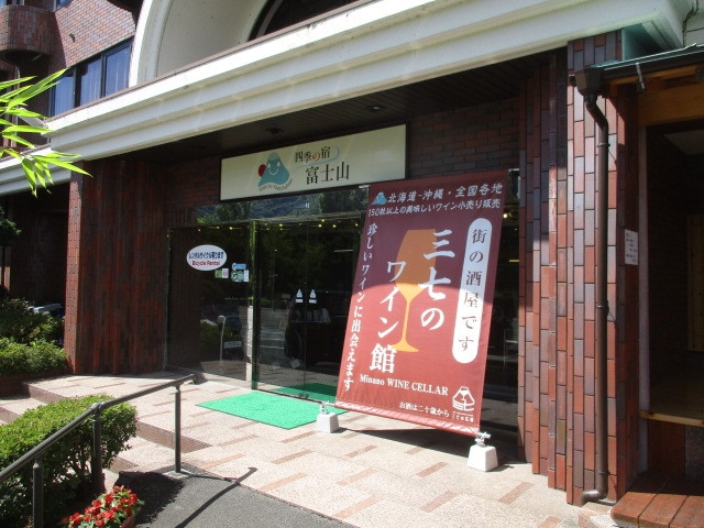 ホテルの玄関の横には足湯があります。無料で足湯を楽しむことができます。道路をはさんで向かいに河口湖、富士山は振り返る方向にあります。館内はワイン館となっており、日本中のワインを扱っていました。となりはハーブ館、観光施設がまとまっています。