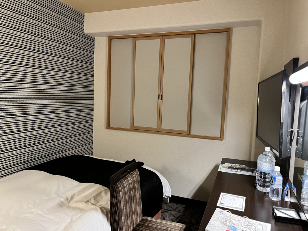 水回りはきれいでなかったですがスタッフが親切で聞いたことにプラスで教えてくれたので高評価でした。駅から結構歩きます。何故ここにホテルが?というほどの位置でした。カーテンではなく襖で窓を塞ぐため夏でも室内に光が漏れることなく快適でした。