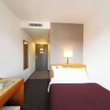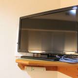 シングルルームと変わらない広さのライトツインには、デスクも椅子もなく食事を持ち込むには不向き。壁掛けの大型テレビ画面がやたら存在を主張している。