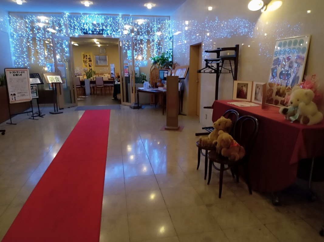岩見沢では、一番大きなホテルです。結婚式などもできるホテルなのでフロントも広いです。部屋も、まずまず広いのですが、以前泊った時とは変わっていて、けばけばしい内装になっていました。模様替えをしたのですね。ただ、コロナのせいでしょうか、あまり宿泊客がいないようでした。それでも朝食は、おいしく快適でした。