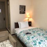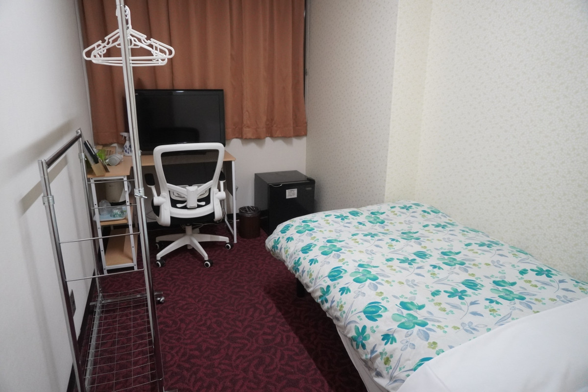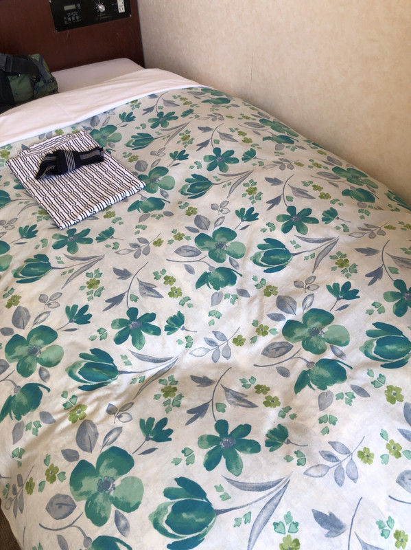 クローゼットがあって、コンパクトでしたが、ハンガーもあり、ジャケットやコートをかけることができました。ソファは1人掛け用です。布製だったので、滞在中、ソファはとくに使用はしませんでした。寝る時の用に浴衣が用意してあって、ありがたかったです。ベッドの頭のところにライトスタンドがありました。エレベーターで部屋にあがれます