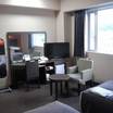 部屋の半分は駅に面した側にあるので、窓から福知山駅に発着する電車の様子も眺められる。