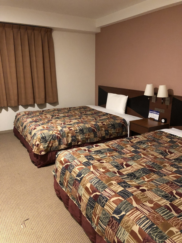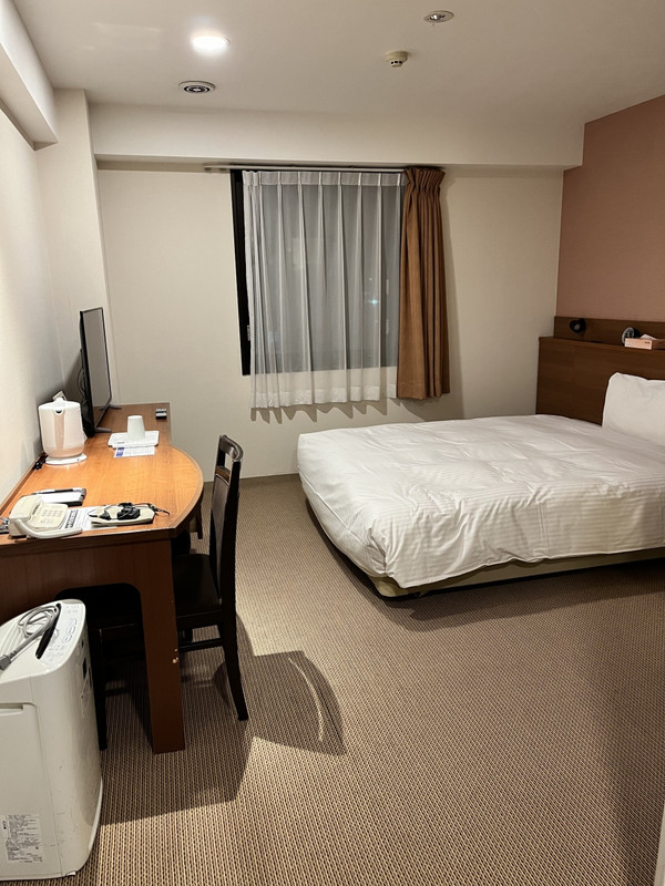 部屋は通り沿いに位置したが、意外に部屋内は静かに過ごせた。エアコンは各部屋ごとの操作ができて良かった。シャツワンピ形寝巻きには苦労した。朝食会場には、いわし糠だきや辛子明太子、うどんなど数種類ではあるが名物が味わえる。夜には広い駐車場が埋まってた。