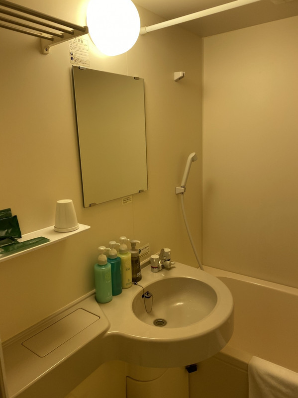 客室は12平米のシングル。大浴場があって、ユニットバスを使わなかったせいか特に狭さは感じません。